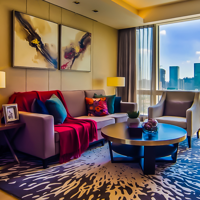 Hand tufted carpets placed in living areas of suites, villas and premium residences for an upgraded, home-like feel.