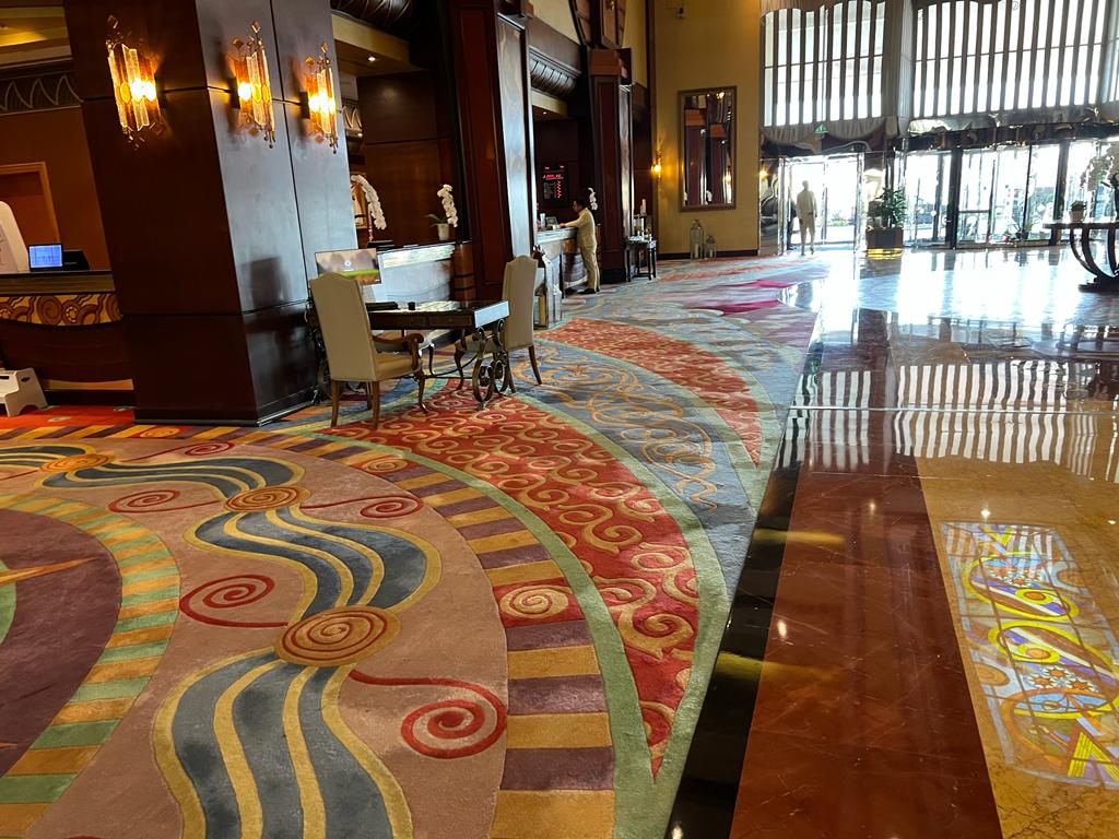 Many properties use hospitality carpets in corridors and large areas, while reserving hand tufted custom carpets for high-impact zones like lobbies and lounges.
