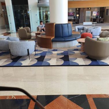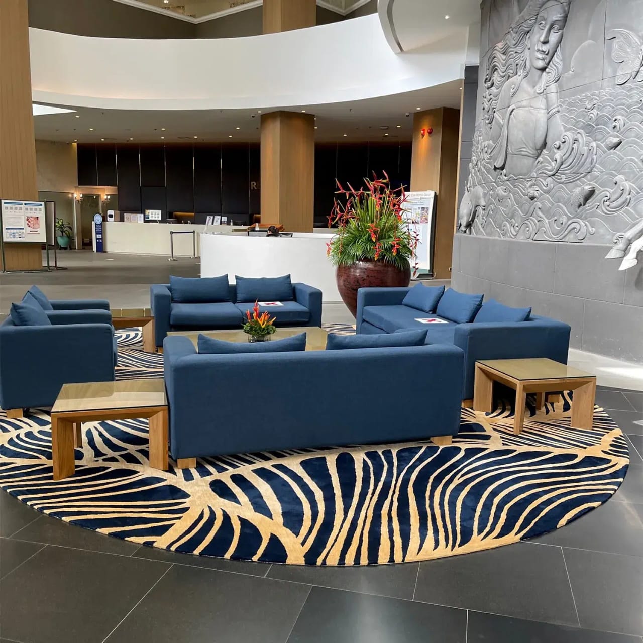 Hand tufted carpets are often used together with Indian hand made rugs in lobbies, lounges and feature areas.